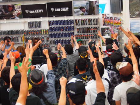 | 5月21日、山梨県甲府市にあるフィッシャーマン甲府店にて、ガンクラフトトークライブ「GAN'S SESSION」が開催された。ガンクラフトのトークイベント としては初となる山梨県での開催。県内には富士五湖を始め、数多くのバスフィシングフィールドを抱えているだけに、お客さんの注目度も高かった。 |